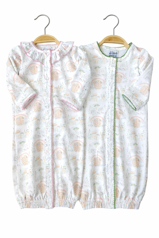 Noah's Ark Gown, green gender neutral trim