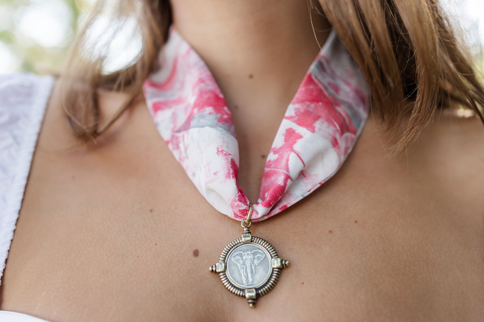 Add a touch of art to your style with our one-of-a-kind, hand-painted scarf necklaces. Each scarf is uniquely created—no two are ever the same! Wear it flat for a flowing look or knot it for added texture and style. Hand painted by Marci Malec and sewn by Sarah Marzella, these handmade pieces are a true statement accessory. Removable charms slide off easily, so you can mix and match to suit your look. The scarf can also be tied around your hat to create a custom hat band.