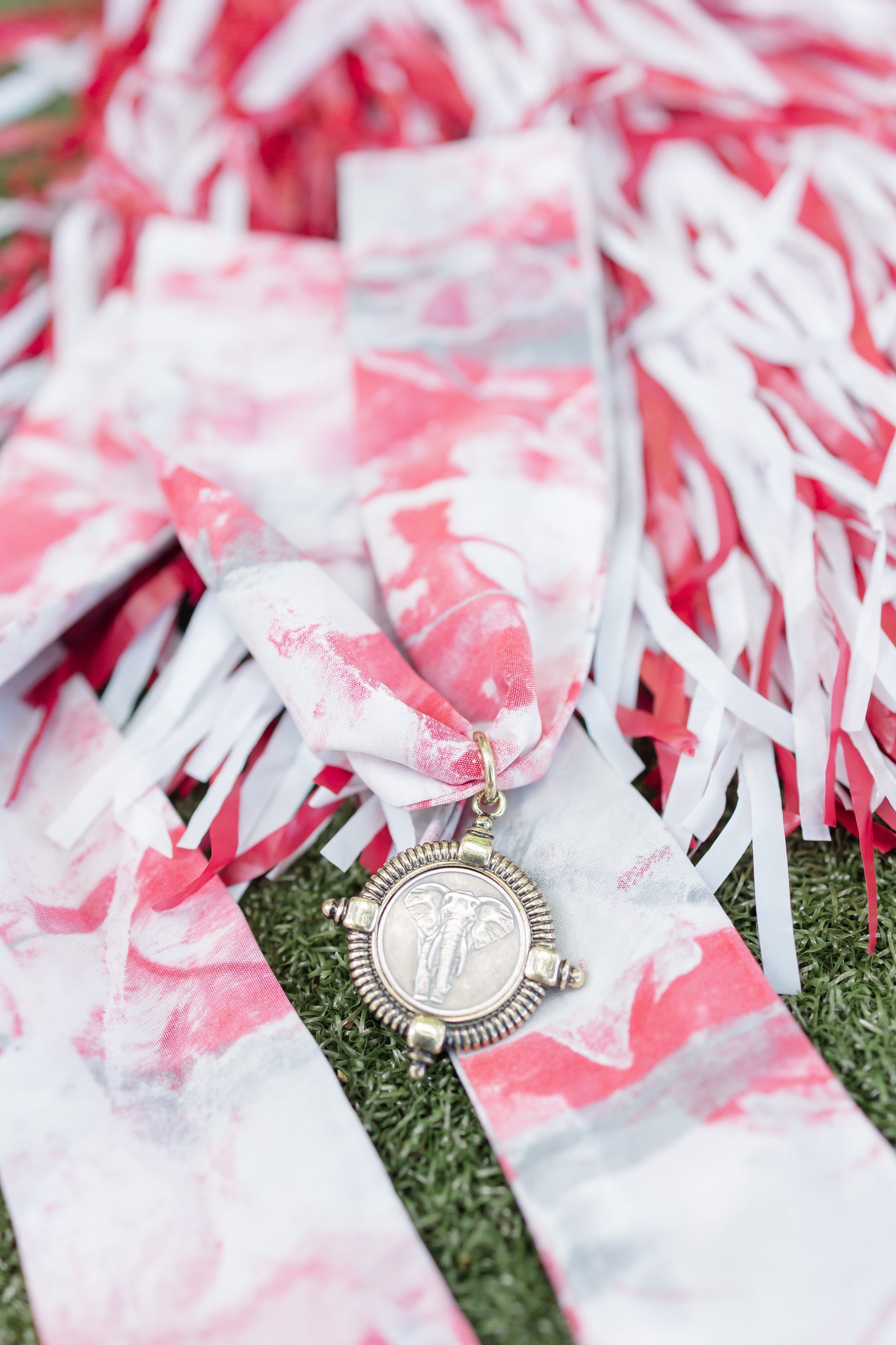 Crimson and Gray Hand Painted Elephant Necklace