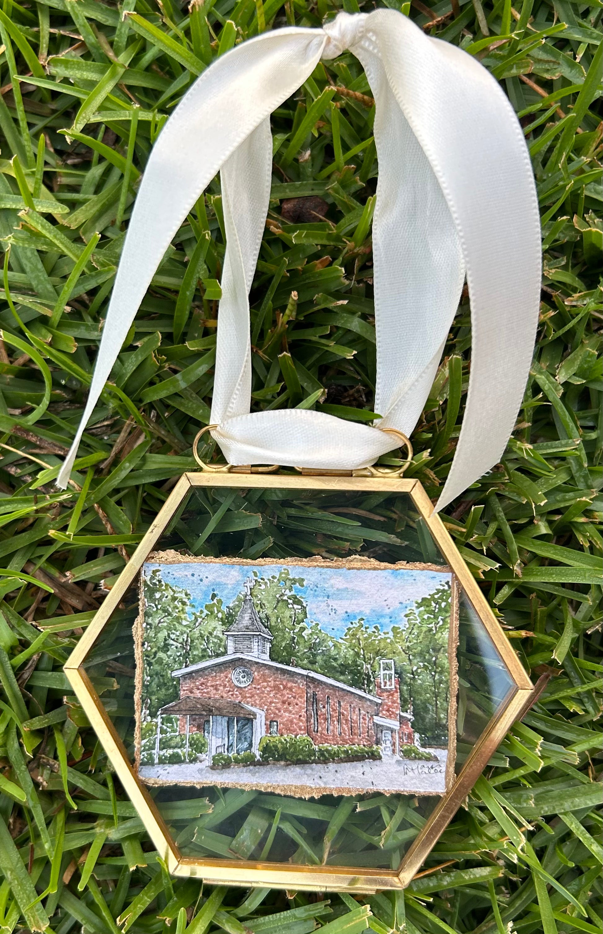 Mini framed print with hand painted gold edges. Comes in box ready to gift. Just add favorite bow!